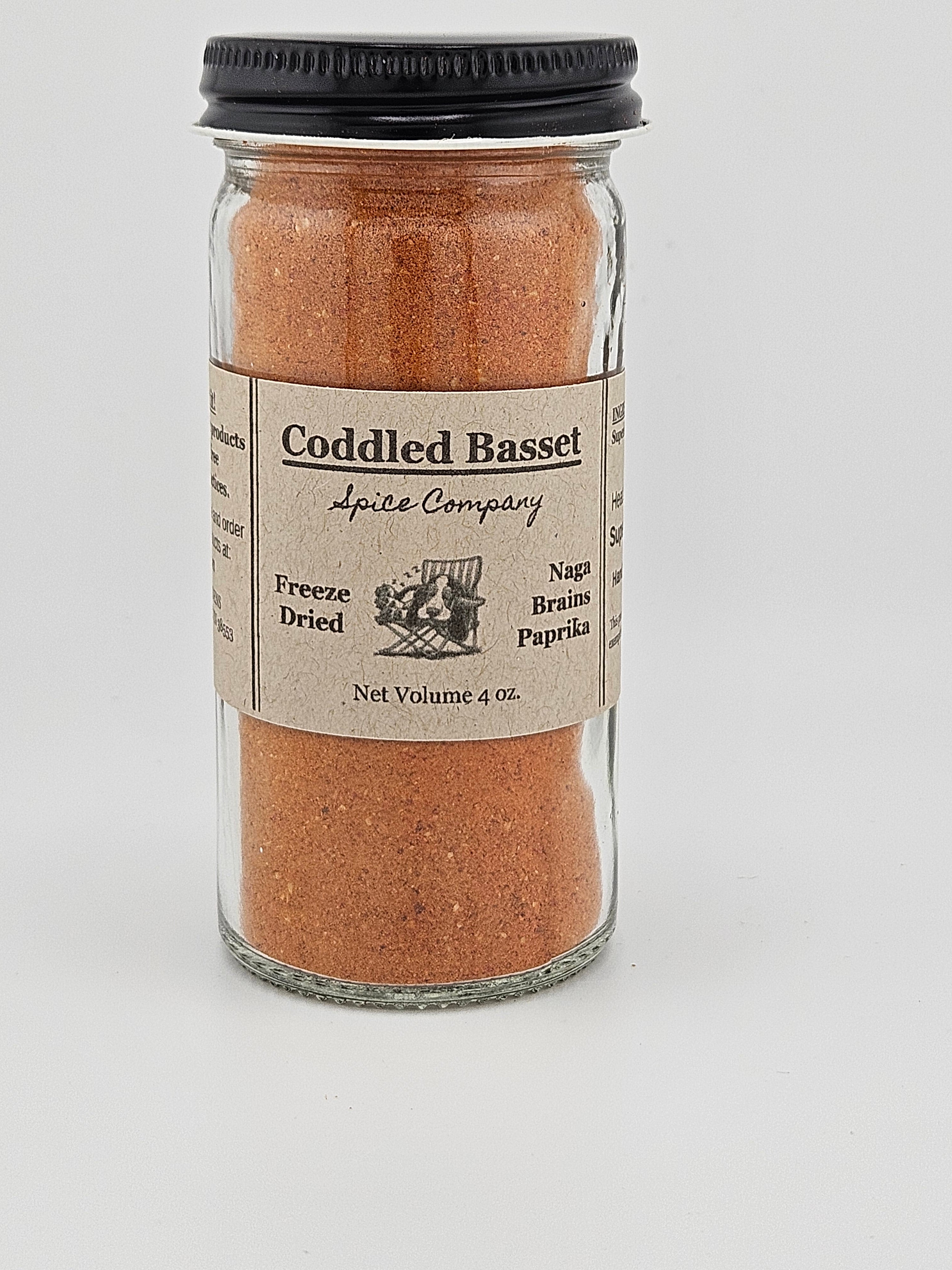 Naga Brains Paprika is made from a very productive cultivar that has red and chocolate ripening pods giving it that dark red color. One taste and you will recognize the fruity tropical flavor of the naga lineage and then see why they call it superhot. Great for giving dishes a splash of heat and color.